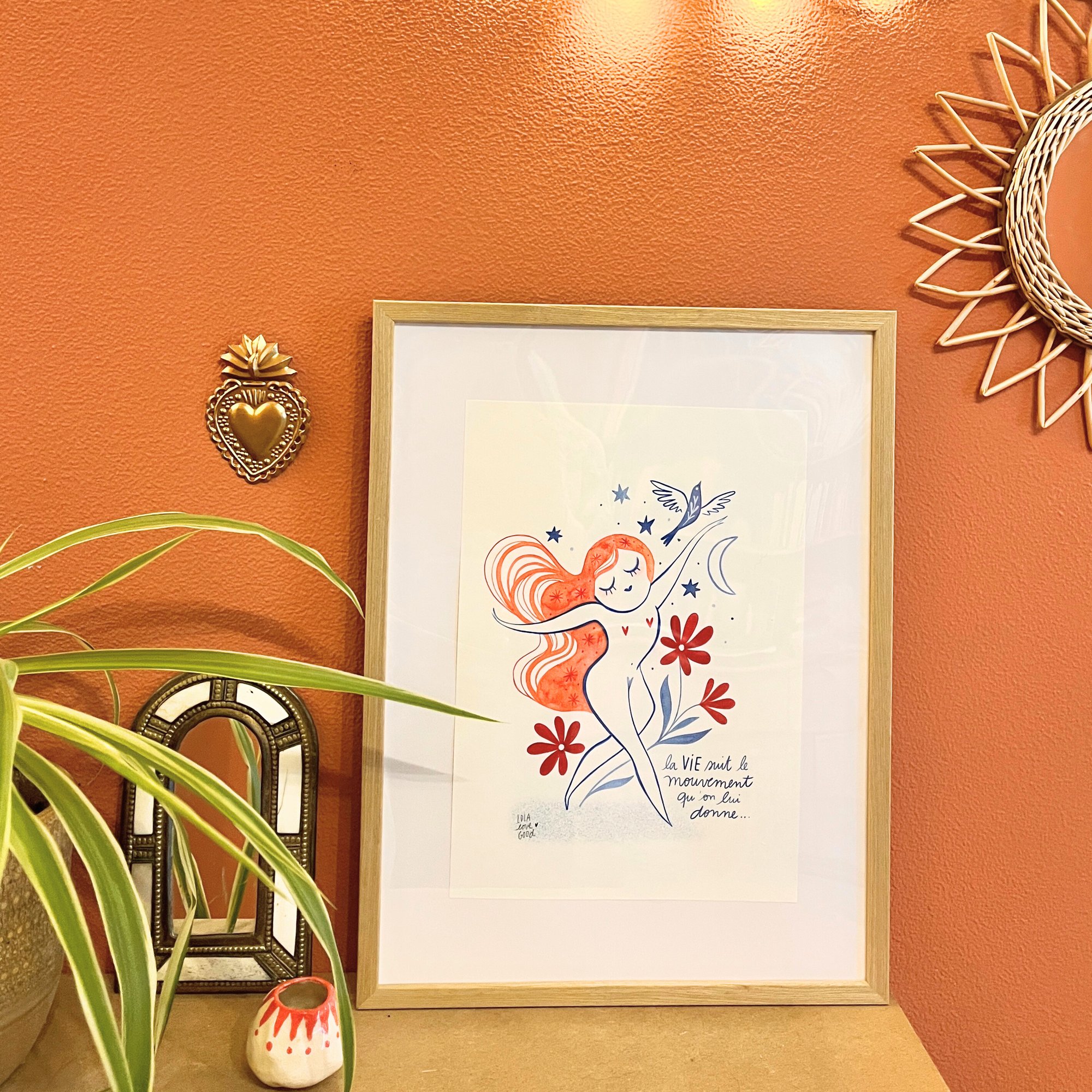 Impression A4 "La Vie suit le mouvement..." repassé à la maison par une peinture brillante